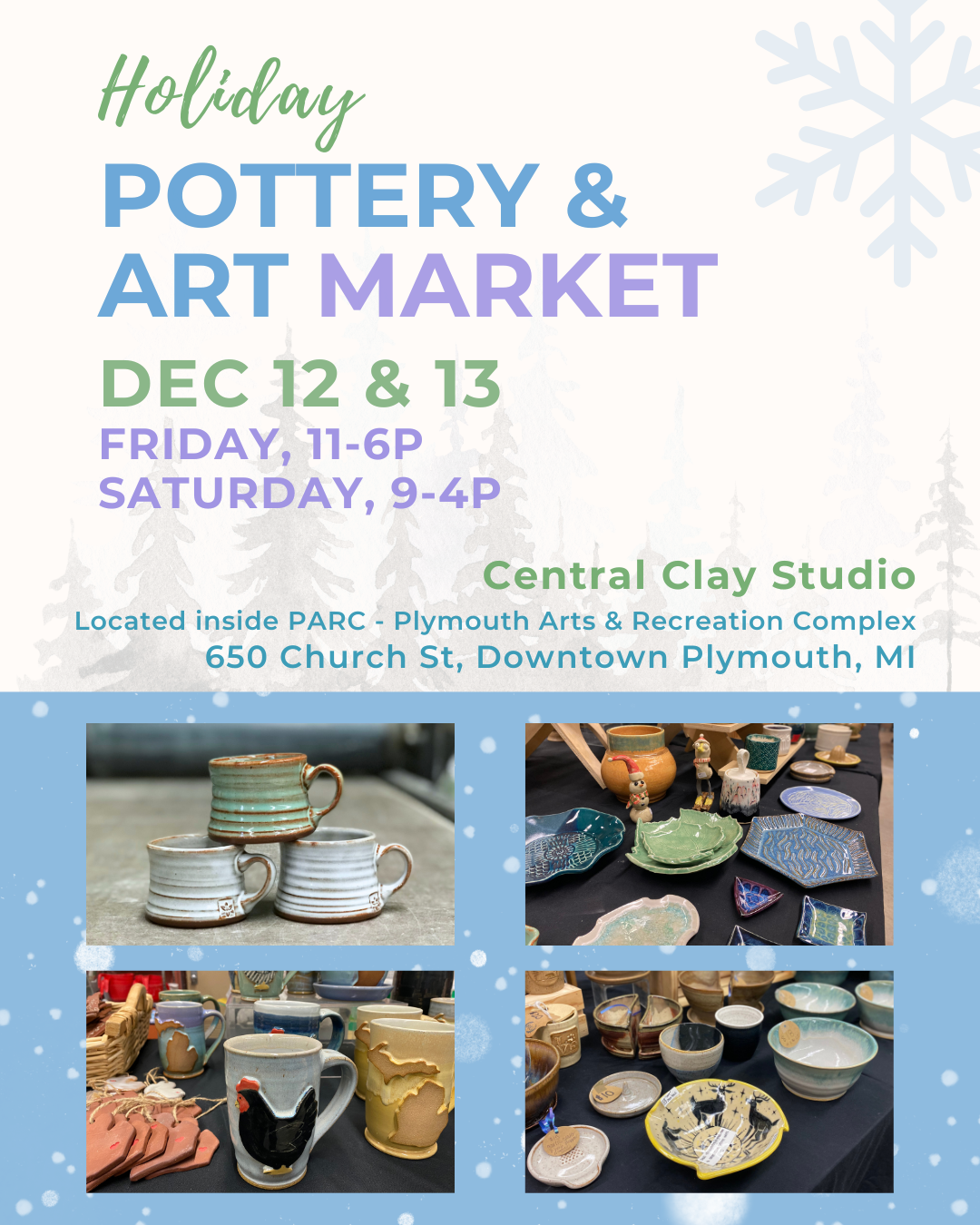 Located in Downtown Plymouth, Michigan - Central Clay Studio offers single-session projects, workshops, and 6 week classes for beginning to experienced potters of all ages. We hope to give everyone in the community the chance to discover the fun of “playing in the mud” and the opportunity to develop a lifelong passion for art.